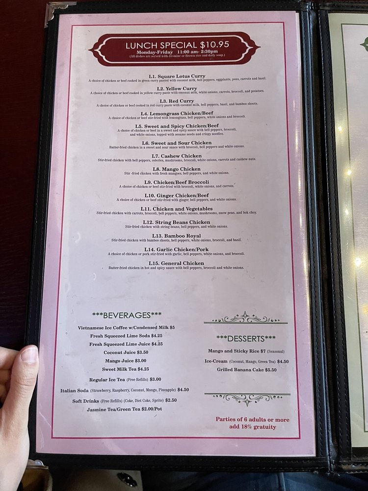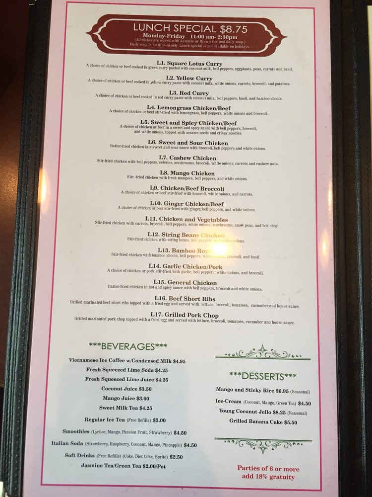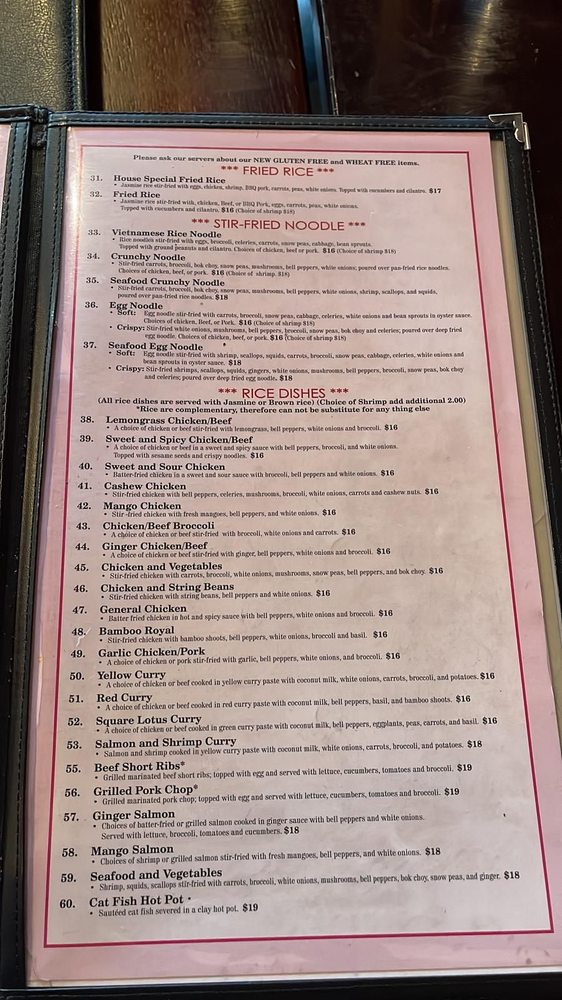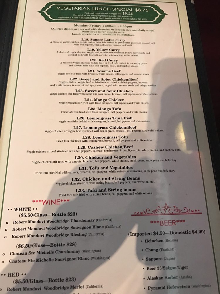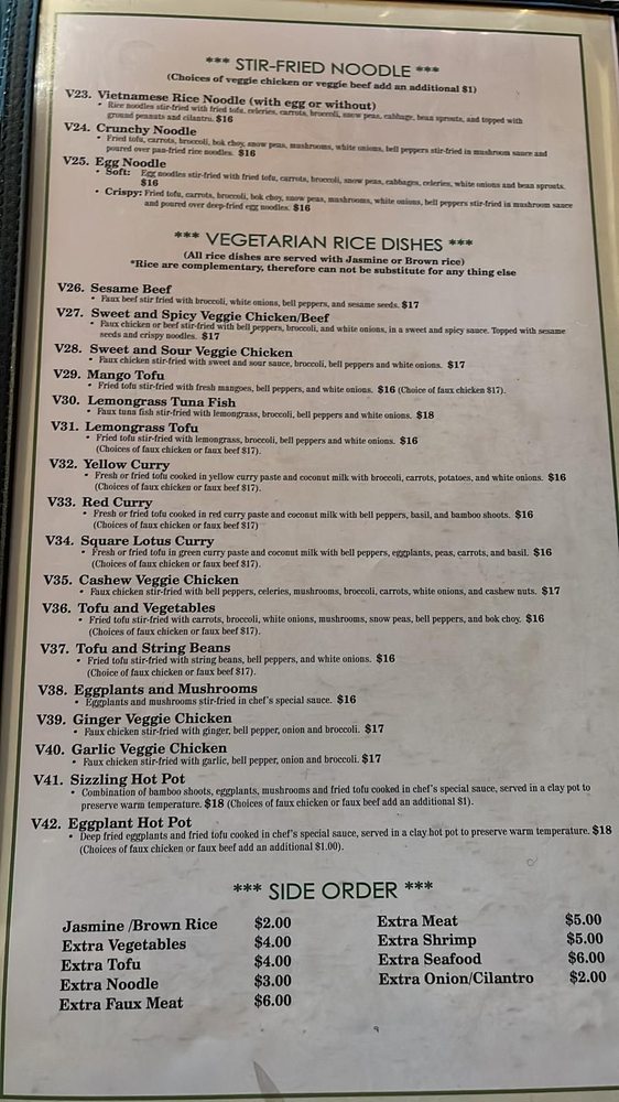 Square Lotus in Bellevue, WA, boasts a diverse menu with a focus on Vietnamese and vegetarian cuisine. Known for their pho, bun bo hue, fresh rolls, and pork over rice, this restaurant offers many vegetarian options alongside traditional meat dishes. Customers rave about the flavorful grilled pork chop, the crispy seafood noodles, and the yellow curry with vegetarian "chicken." The generous portions and fresh ingredients make Square Lotus a go-to spot for both light meals and hearty dinners. The welcoming staff and fast service enhance the dining experience, with options for reservations, delivery, and takeout. With a commitment to providing reusable tableware and catering services, Square Lotus strives to offer a sustainable dining experience for all customers. Whether you're a meat-lover or vegetarian, this restaurant has something for everyone to enjoy.